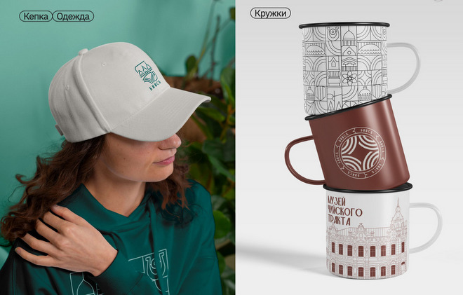 Проработана система иллюстрированных символов, стилизованных элементов купеческой архитектуры. Разработана система применения брендинга в городской навигации, малых архитектурных формах, информационных стендах.