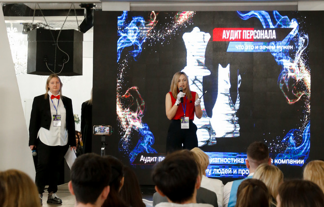 В дуэте выступили внештатный маркетолог Наталья Майер и Василина Горячих, эксперт по подбору персонала агентства «Жираф». Спикеры разобрали тему «Как HR-аудит и маркетинговые инструменты усиливают команду».