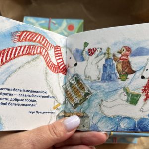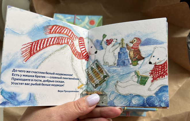 По книжке сняли видео, где родители и дети иллюстрируют истории животных с помощью фигурок настольного театра и рассказывают о своих семейных традициях.