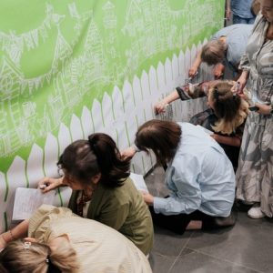 Дизайн баннера, блокнота, афиши, кружек на основе стиля «аистов» разработала графический дизайнер Инна Каташева. Баннер был задуман функциональным: в начале события его использовали как фотозону, во время тренингов баннер стал маркерной доской, где команды участников писали свои варианты «Формулы счастья». Все вместе объединяло участников, создавая тёплую атмосферу форума приёмных родителей.